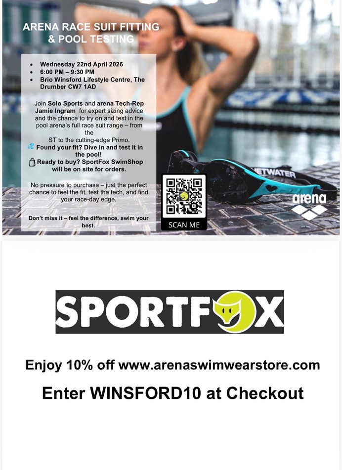 Date for your diaries! We have arranged a super exciting opportunity for all Juggernaut swimmers on Wednesday 22nd April. Solo sports are coming to Winsford and running a tech suit testing session. We will have a tech rep on site to measure and provide the correct size suit and advice.